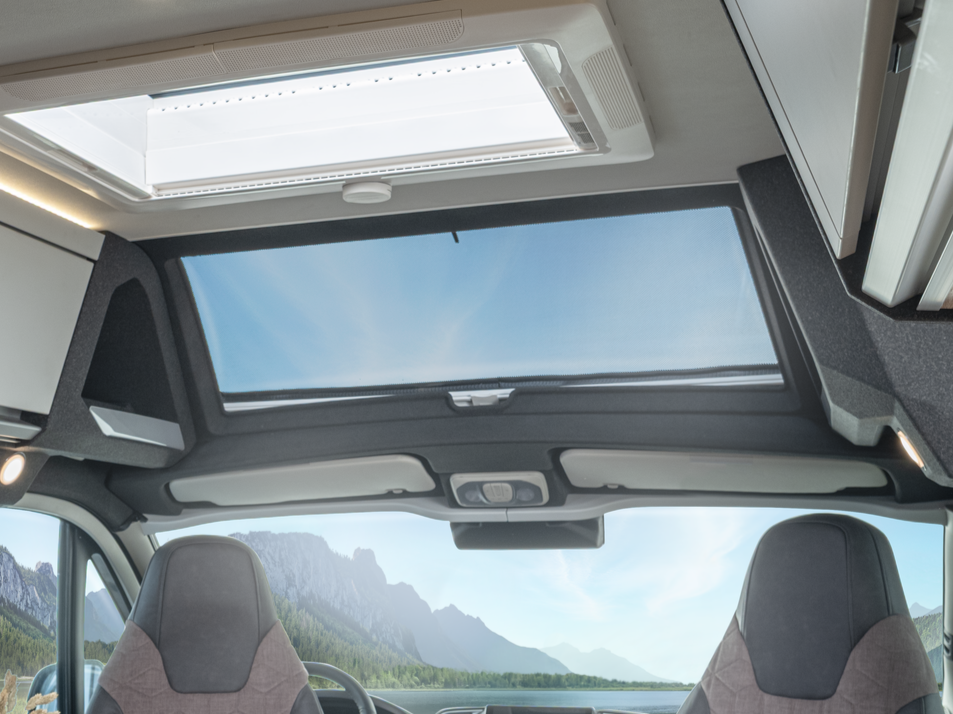 - Panoramatické střešní okno nad kabinou