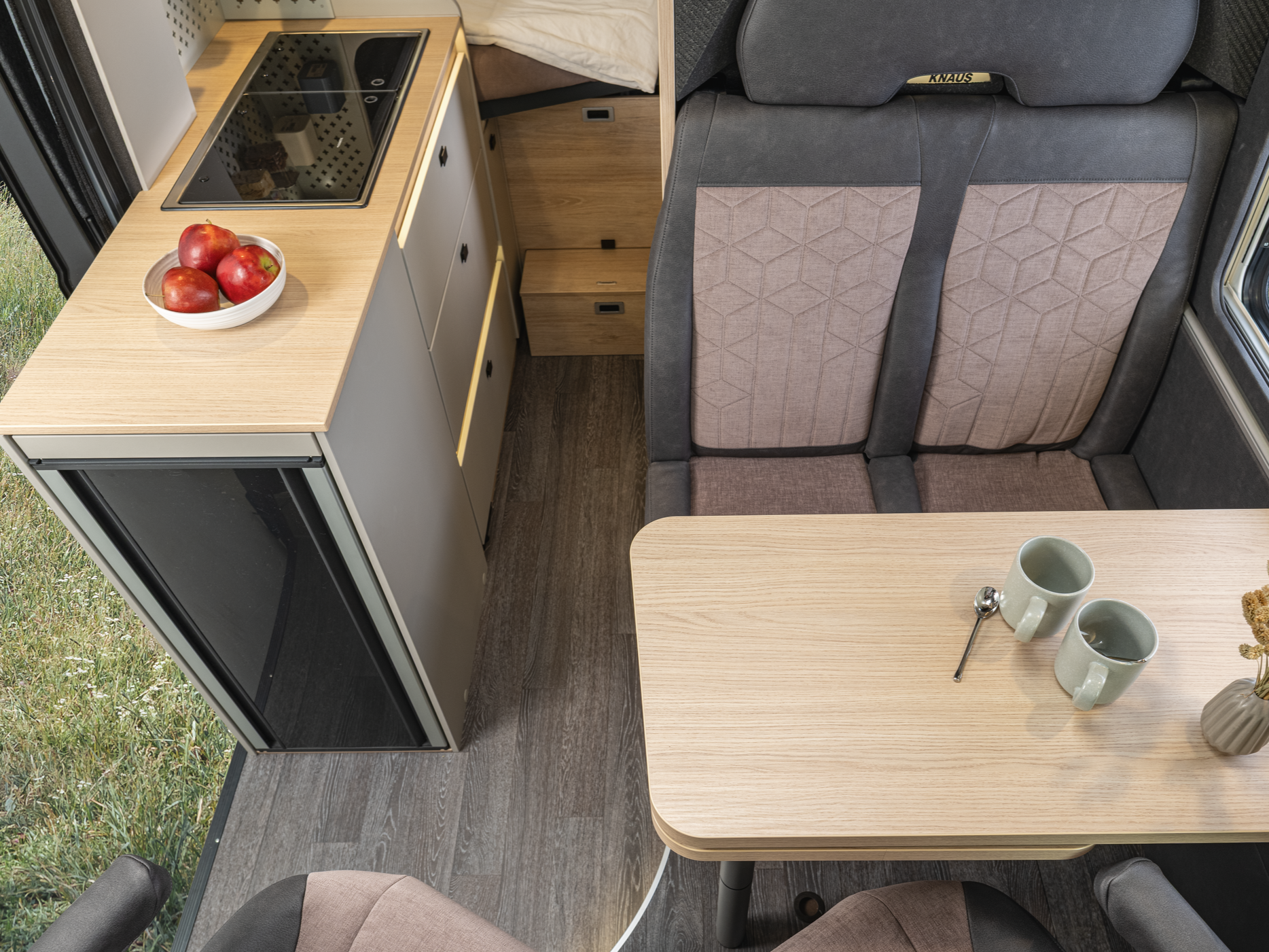 Digitální ovládací panel topení TRUMA iNetX, Izolovaná a vyhřívaná odpadní nádrž, Zatemnění předních a bočních oken kabiny roletkami, Elektrický vstupní schůdek 70cm, Markýza střešní černá 400cm, LED osvětlení