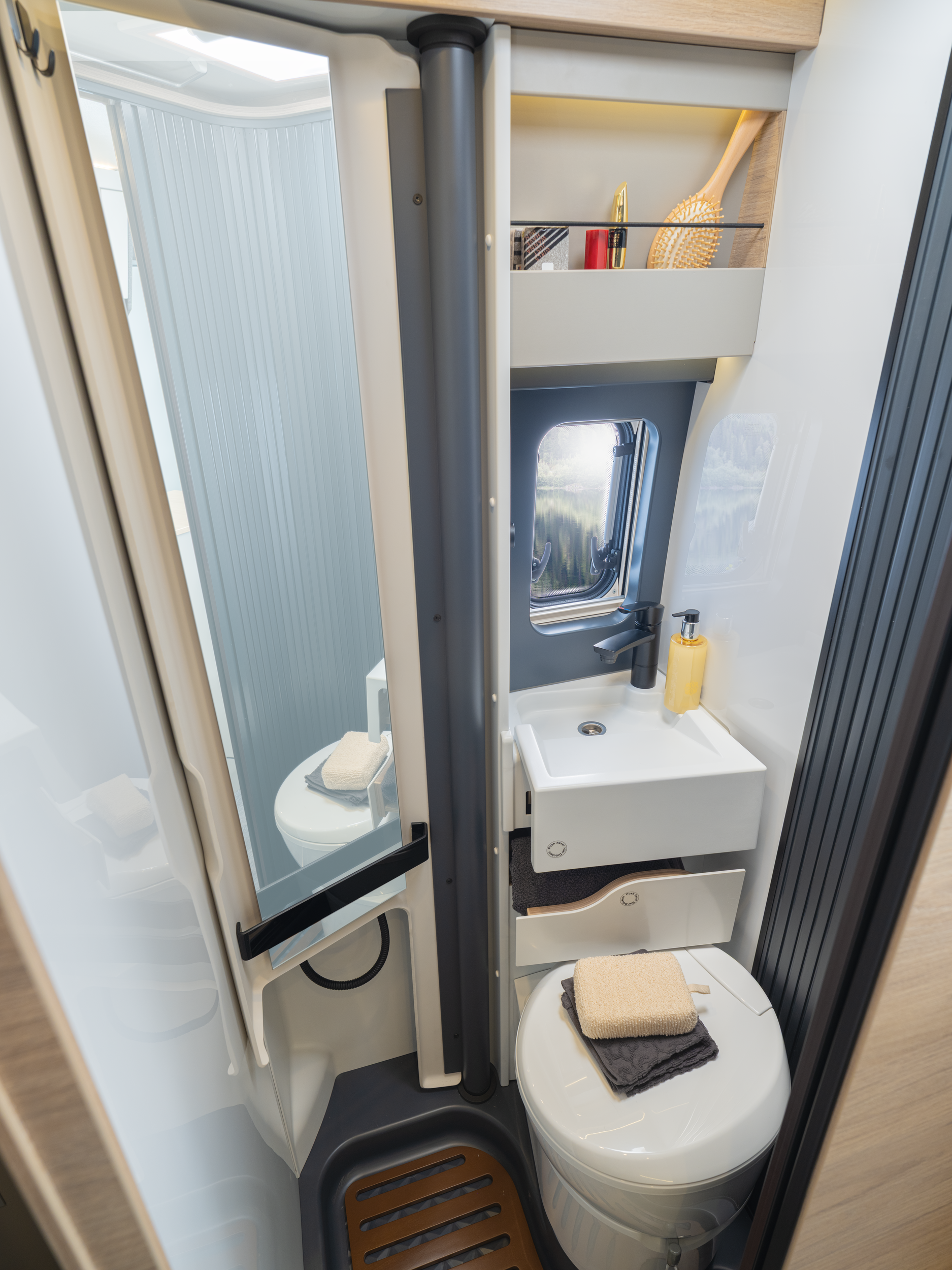 - Kompaktní koupelna s překlápěcí stěnou