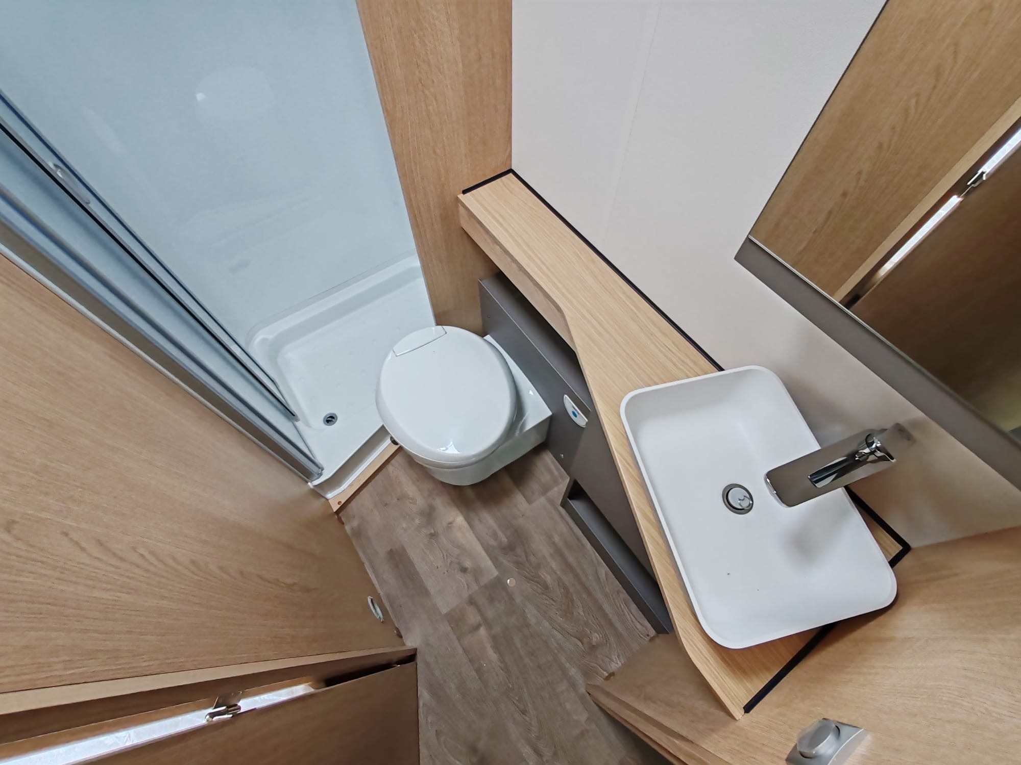 - Boční dveře do nástavby 70 cm s odpadkovým košem, oknem, zatemňovací roletou a centrálním zamykáním včetně nízkého vstupu do kupé