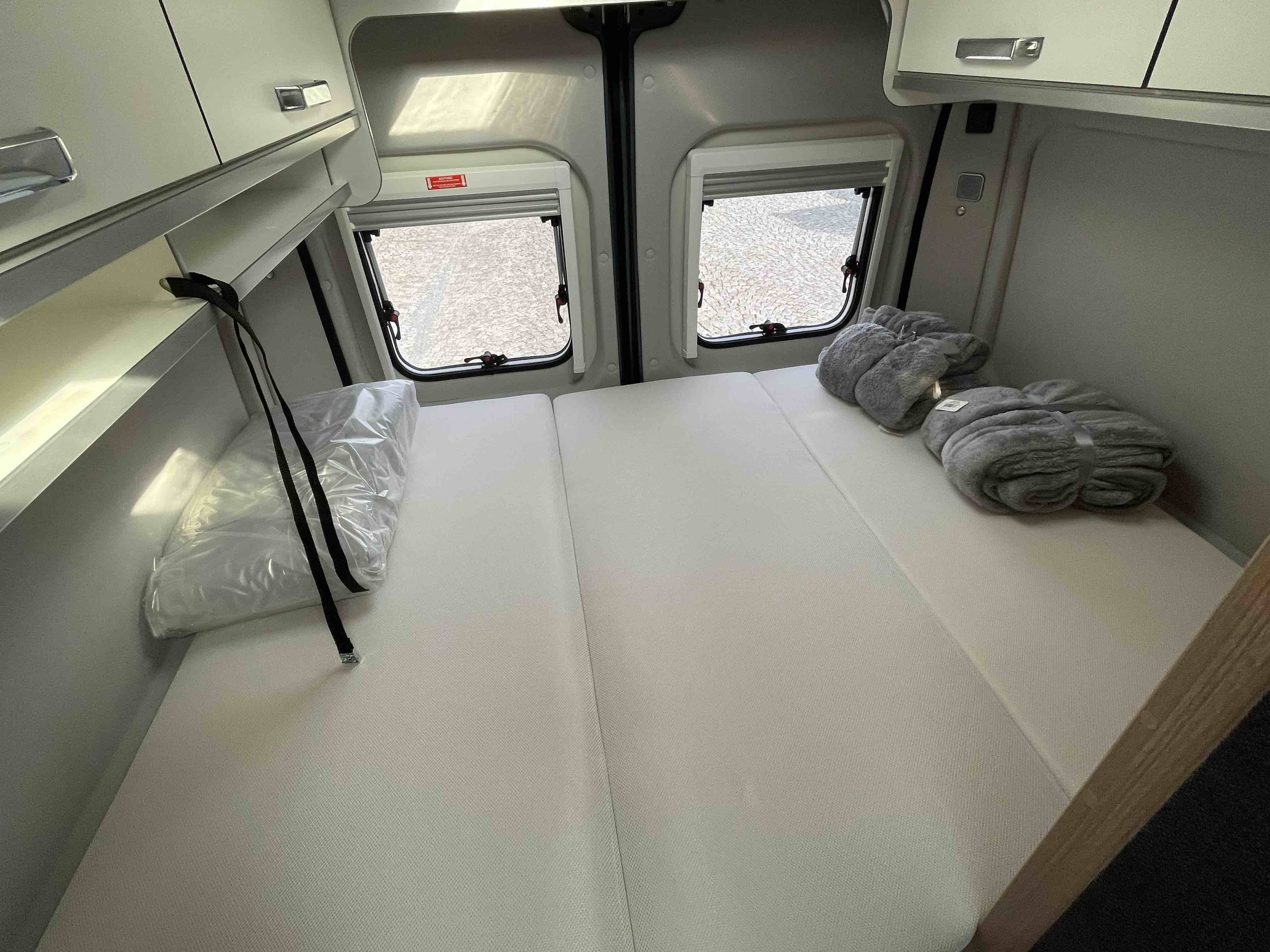 - Okna s dvojitým zasklením, tónovaná, s ochranou proti hmyzu a zatemněním